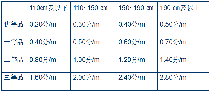 ●內(nèi)在質(zhì)量和外觀質(zhì)量分別評(píng)等后,以最低的品等作為該匹布等級(jí)。
