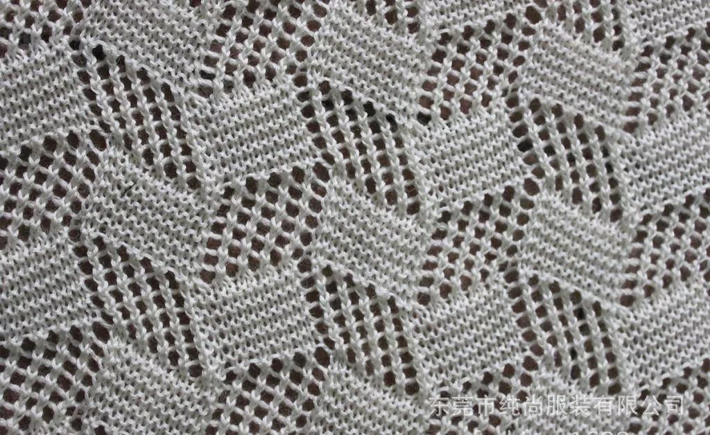 (桂花目),將機(jī)板的機(jī)針進(jìn)行幾專面針,過(guò)底針幾專這樣達(dá)到的效果。扭繩又叫辮子花,分3支扭支,6支扭6支等,扭繩左右兩邊一定要1-2支底針,這樣在才顯出扭繩的主體感;又稱麻花,這里舉例,扭繩有一般扭繩、蝴蝶繩、鴛鴦繩等,在多針扭繩時(shí),可在扭繩位將底放幾支針以拉長(zhǎng)線圈。搬針——收針,同一組織單支針或多支針向多方向搬移,也可以說(shuō)是收針的一種,但是做法比較特別,故列出來(lái),同一組織多支針整體移動(dòng)。