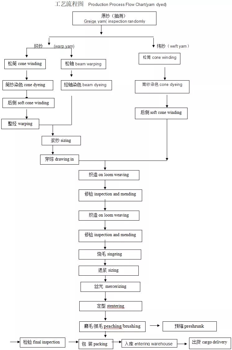 色織布廠根據(jù)工序的不同,分為染色車間、織造車間、整理車間三大主體車間,另設(shè)生產(chǎn)計(jì)劃、設(shè)備動(dòng)?力、工藝技術(shù)等部門(mén)。下面主要介紹三大流程:染色、織造、整理。