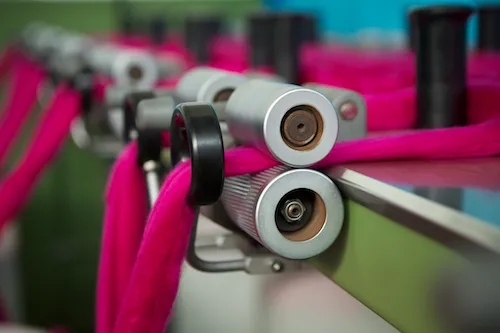半精紡可實(shí)現(xiàn)棉、毛、絲、麻等天然原料與其它新型人造纖維、化學(xué)纖維的成功混紡。毛紡半精紡的原料涵蓋了從山羊絨、羊毛、絹絲、兔絨、棉、苧麻等天然纖維,大豆蛋白纖維、牛奶蛋白纖維、天絲、莫代爾、竹纖維、粘膠纖維等人造纖維以及腈綸、滌綸、錦綸等化學(xué)纖維的成功混紡,產(chǎn)品結(jié)構(gòu)異常豐富。