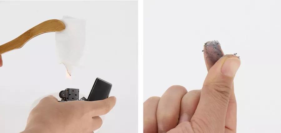 從布料上取一些紗線,點(diǎn)燃后吹滅,將燃燒后的剩余物用手指一搓,感覺有硬顆粒的就是滌棉;而沒有硬顆粒全是灰的就是純棉了。