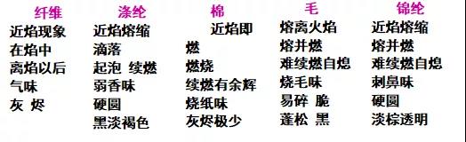 ③. 常見(jiàn)纖維的燃燒性質(zhì):