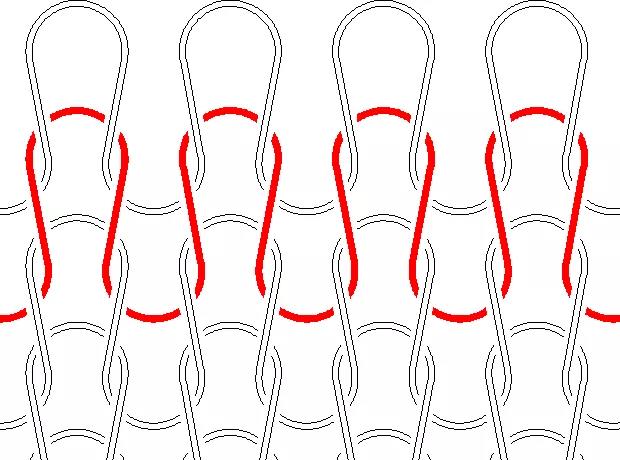 經(jīng)編針織物則通常是縱向的(lengthwise),而且它的組織是以鋸齒狀(zigzag)展開的,這樣它可以使得線圈形成連續(xù)兩個或者兩個以上的凸條(wales)。而它與緯編針織物比起來,通常會更平整,結構更緊密從而導致更少彈性、防止脫絲抽紗(run resistant)。