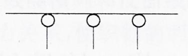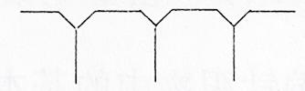 2、集圈:織針沒有升到最高點(diǎn),只升高到中間位置,舊線圈沒有退出針鉤就有新紗線墊在針鉤內(nèi),使針鉤中有兩根紗線或兩根以上紗線,一直到正常退圈時(shí)一起退下。表示見下圖