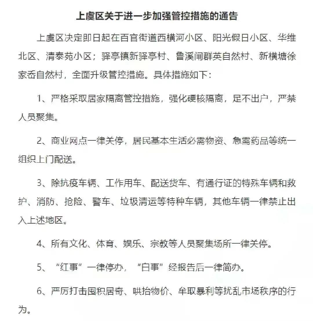 上虞發(fā)布要求:從2021年12月9日下午2時起,對上虞全區(qū)加強管控管理措施。
