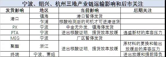 浙江防控升級的地區(qū)多為化工集中區(qū)域,匯集紡織原料生產(chǎn)、下游聚酯消費、包括芳烴產(chǎn)業(yè)、聚烯烴產(chǎn)業(yè)、還有危化品生產(chǎn)等。其中,鎮(zhèn)海地區(qū)作為國內(nèi)重要的石化基地,其管控升級對部分化工品的影響較大,具體受影響程度還得看這波影響影響的供應(yīng)變動情況。