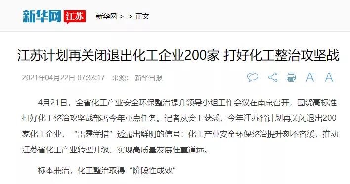 江蘇?。河?jì)劃再關(guān)閉退出200家化企