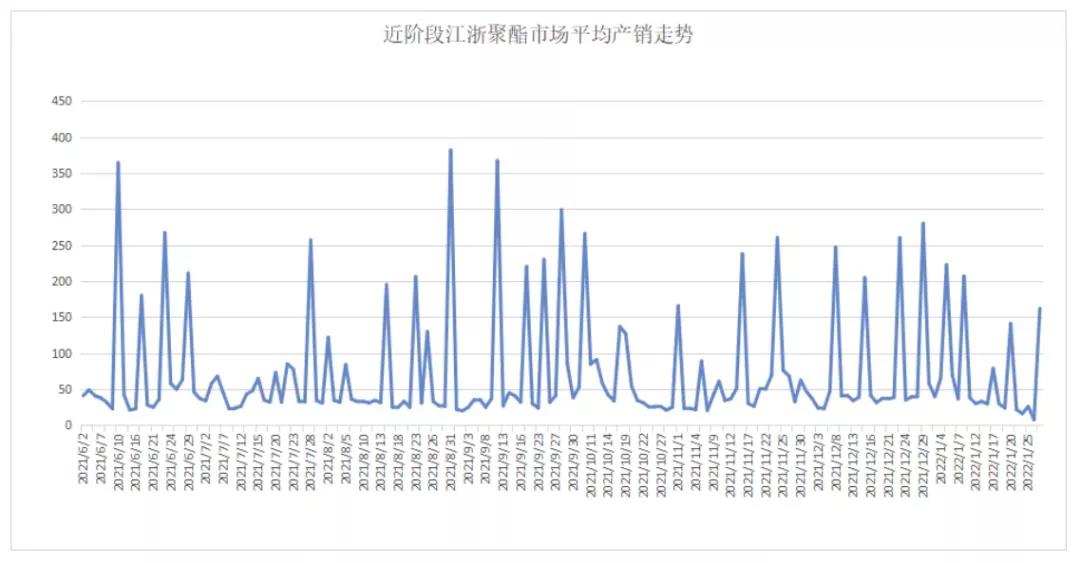 從聚酯產(chǎn)銷來看,春節(jié)前,聚酯工廠產(chǎn)銷迎來了較大的波動。在國際油價和聚酯原料上漲的利好刺激下,雖說聚酯廠家近期報價重心仍是以穩(wěn)為主,但從產(chǎn)銷走勢圖中可以看出,春節(jié)前聚酯市場整體產(chǎn)銷卻是實打?qū)嵉纳仙?/span>