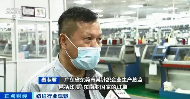 廣東省東莞市某針織企業(yè)生產(chǎn)總監(jiān) 秦淑君:包括印度、東南亞國家的訂單轉(zhuǎn)移了40%左右到我們這里,國內(nèi)開機(jī)率提升了30%到40%左右,現(xiàn)在是100%。