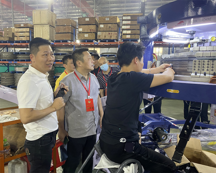 2023年6月15日石獅市政協(xié)領(lǐng)導(dǎo)朱賢、市政協(xié)部分常委、委員、市政協(xié)經(jīng)濟(jì)資源辦公室工作人員等一行人蒞臨石獅市振富針紡機(jī)械有限公司就關(guān)于開展“智能制造產(chǎn)業(yè)發(fā)展”對(duì)口協(xié)商活動(dòng)進(jìn)行了視察,在公司負(fù)責(zé)人王偉明的陪同下,先后對(duì)生產(chǎn)車間、組裝、調(diào)試等現(xiàn)場進(jìn)行視察。