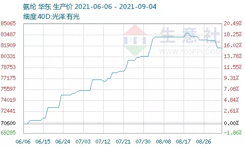 今年以來,紡織服裝原料幾乎是全線開啟上漲模式。棉紗、短纖等紡織原料價格一路上漲,氨綸價格更是比年初翻了好幾倍,目前價格高位震蕩,產(chǎn)品仍然供不應求。今年6月下旬以來,棉花開啟新一輪趨勢性上漲,至今累計漲幅超15%。