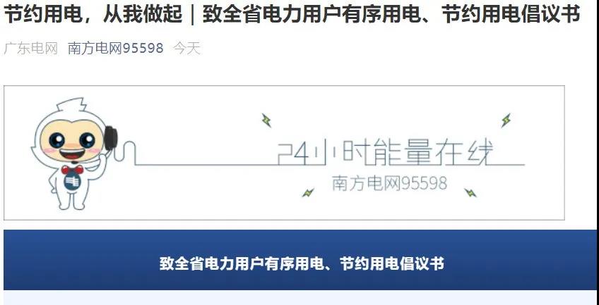 9月26日,廣東省能源局和廣東電網(wǎng)有限責任公司聯(lián)合發(fā)布《致全省電力用戶有序用電、節(jié)約用電倡議書》。倡議全省工、商業(yè)企業(yè)
