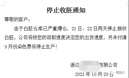 即使目前染廠不再限產(chǎn),但產(chǎn)能上升也需要過程,并且前期擠壓的訂單一時間也難以快速釋放,因此短期內(nèi)限產(chǎn)結(jié)束也未能完全改善擁擠的狀態(tài)。如今的印染廠爆倉嚴(yán)重,坯布堆至馬路上,生產(chǎn)被壓卡,排隊染色,交期長達(dá)20多天。