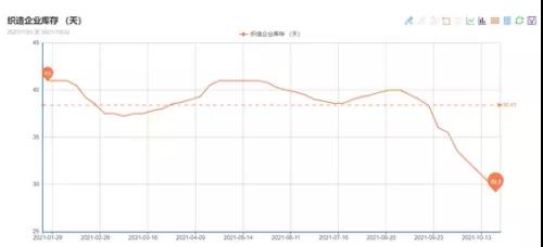 由于產(chǎn)能的下降,疊加“銀十”訂單的到來,織造庫存在短期內(nèi)得到了一次大釋放。主營春亞紡的凌經(jīng)理跟我們說:“我們主要做訂單,但是市場貨也有在做,像我們春亞紡做的很多,這幾天我們這春亞紡都已經(jīng)庫存不多,市場上也確實應(yīng)該緊張了。”主營功能性面料的陳經(jīng)理和我們說道:“我們這庫存不太多了,現(xiàn)在走貨很通暢?!敝鳡I春亞紡的翁總表示:“我們做現(xiàn)貨的,庫存要有一定的存量,基本在一個月吧,比前期走貨確實是好轉(zhuǎn)了,庫存下降了很多。”