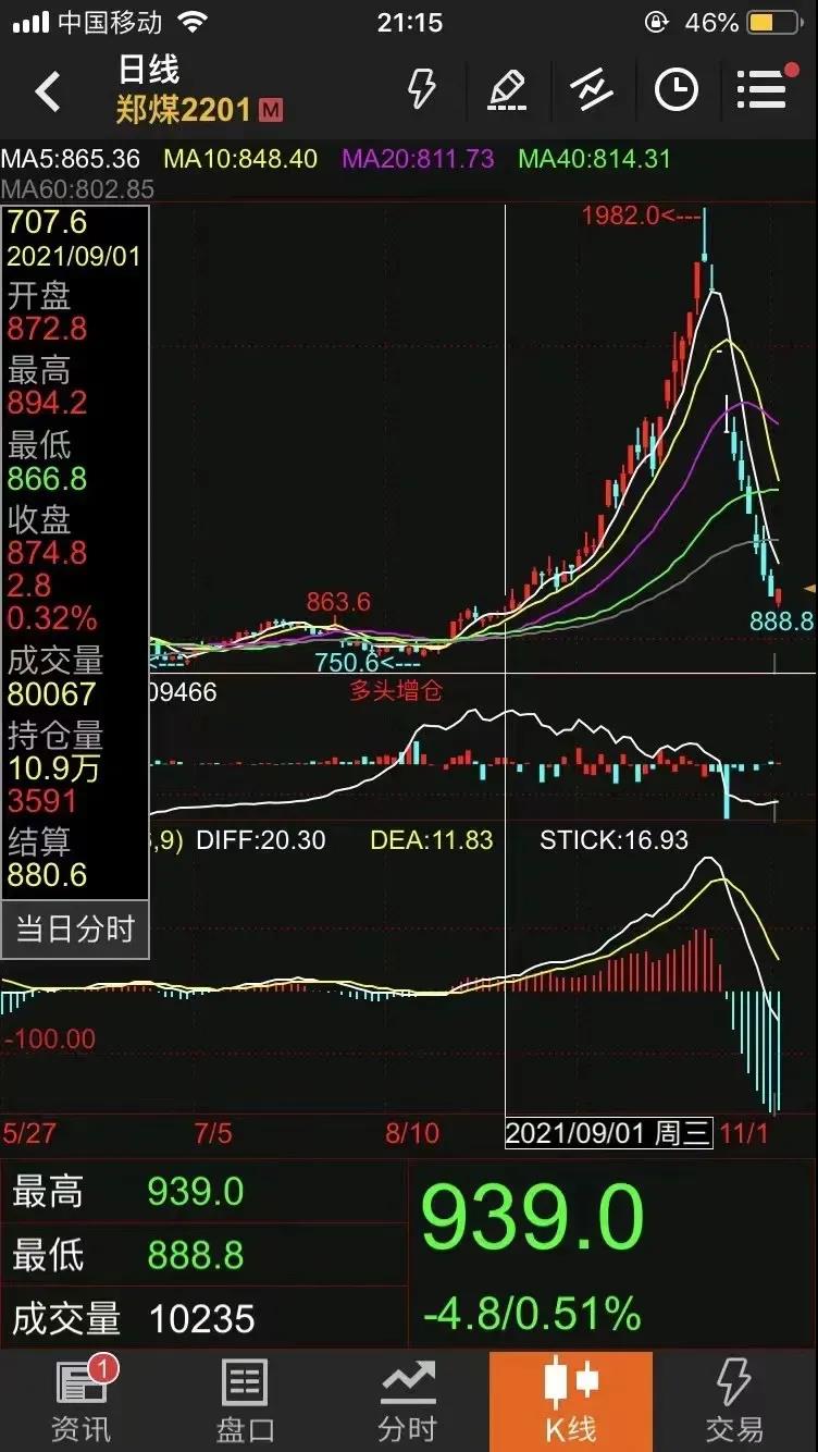 自10月19日以來,動(dòng)力煤主力合約價(jià)格顯著下挫,9個(gè)交易日,曾7個(gè)交易日觸摸跌停板,其中5個(gè)交易日封于跌停板收盤,截至11月1日,動(dòng)力煤主力合約價(jià)格從最高1982.0元/噸回落,最低917.6元/噸,跌幅53.70%,基本回吐9月10日以來的所有漲幅。