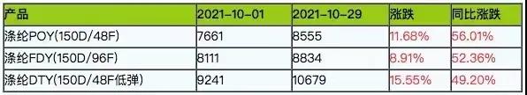 冷清的產(chǎn)銷,背后是下游織造廠商抵觸情緒的快速升溫,現(xiàn)在的滌綸類產(chǎn)品坯布價(jià)格漲幅在15%左右,我們?cè)倏吹綔旖z價(jià)格,環(huán)比上月漲價(jià)潮前的價(jià)格,常規(guī)滌絲的價(jià)格上漲幅度分別為:150D FDY漲幅21.9%、150D POY漲幅25.5%、150D DTY漲幅23.6%,下游的漲價(jià)力度完全無法填補(bǔ)其中的利潤差值,這讓織造企業(yè)大都選擇按需采購的購買策略,等待滌絲價(jià)格下滑。
