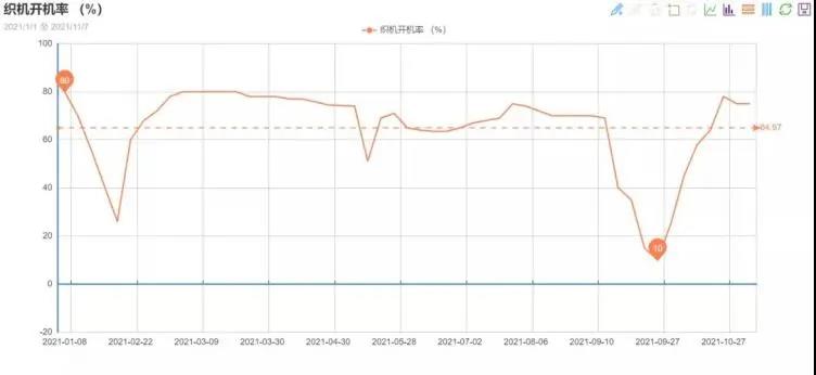 部分地區(qū)目前限電暫時(shí)取消了,本以為訂單會(huì)正常一些,但是紡織老板們卻言:“更少了!”雖然大部分企業(yè)能夠滿(mǎn)開(kāi),也有一些機(jī)器較多的廠(chǎng)家開(kāi)7成以上,但本周盛澤地區(qū)織造開(kāi)工率下滑至75%左右。