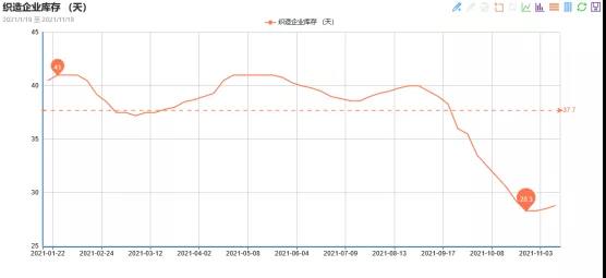 終端紡織市場(chǎng)隨著購物節(jié)熱度的過去,“圣誕節(jié)”、“雙十二”的訂單也已基本制作完畢,目前新訂單偏少,而這些訂單又恰逢限電限產(chǎn)的風(fēng)頭,社會(huì)庫存大幅去化,目前根據(jù)綢都網(wǎng)的數(shù)據(jù)監(jiān)測(cè),織造企業(yè)坯布庫存整體在28.8%左右。庫存的去化,本應(yīng)讓市場(chǎng)上坯布價(jià)格得到上升,而現(xiàn)在坯布價(jià)格卻在慢慢跌下來,其原因還是由于目前行情不是太過積極。