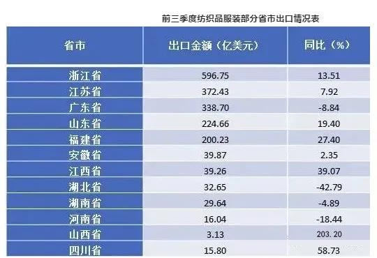 而不容忽視的是,今年以來,在江浙地區(qū)服裝出口迎來穩(wěn)步增長的同時,中西部省市出口表現(xiàn)卻異常突出。據(jù)測算,1-9月,我國西部地區(qū)出口紡織品服裝123.7億美元,同比增長23.9%,占我國紡織品服裝出口市場的5.4%;