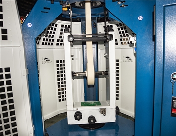 不論是針筒與針盤(pán)同步回轉(zhuǎn)而三角座固定的羅紋機(jī),還是三角座回轉(zhuǎn)而針筒與針盤(pán)固定的羅紋機(jī),都從導(dǎo)紗器引入紗線(xiàn),由針筒舌針形成正面線(xiàn)圈,針盤(pán)舌針形成反面線(xiàn)圈。一根紗線(xiàn)在緯向交替編織正反面線(xiàn)圈,以形成羅紋組織。