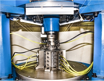 針盤(pán)為一金屬圓盤(pán),盤(pán)面沿徑向開(kāi)槽,其槽數(shù)與針筒槽數(shù)相等。針盤(pán)安裝在針筒上方,針筒槽和針盤(pán)槽交錯(cuò)配置。針盤(pán)和針筒之間留有一定間隙,以便織物通過(guò)。舌針?lè)謩e插在針盤(pán)槽和針筒槽中。針筒三角座的三角組成控制針筒舌針升降運(yùn)動(dòng)的三角針道。針盤(pán)三角座的三角組成控制針盤(pán)舌針徑向進(jìn)出運(yùn)動(dòng)的三角針道。